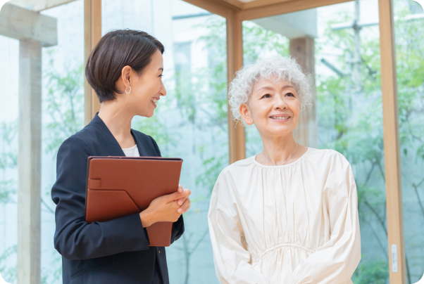 入居時のスムーズな契約はもちろん、その後の暮らしも見守ることで、ご本人様が自分らしく過ごせる毎日と、ご家族様も納得の安心感をお届けし、快適な新生活を全力で応援します。